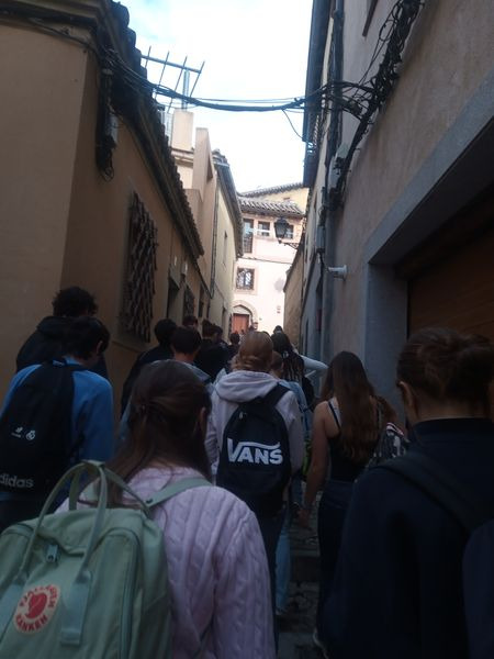 Am Mittwoch trafen wir uns morgens an der Schule der Spanier, um mit dem Bus nach Toledo zu fahren. Auch hier begleiteten uns unsere beiden Lehrerinnen. Uns erwartete eine spannende Führung durch Moscheen, Synagogen und Kirchen. Dabei erfuhren wir, dass Toledo eine multireligiöse Stadt war und man dort bis heute Merkmale des Christentums, des Islams und des Judentums in den Gebäuden wiederfindet.