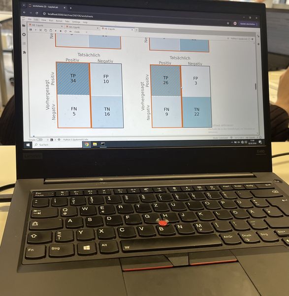 Eine Gruppe beschäftigte sich mit der Fragestellung, ob Künstliche Intelligenz fair ist, d.h. ob zum Beispiel die Kreditvergabe durch Banken mit Hilfe von KI vergeben werden kann und wo Grenzen sind. Die Schülerinnen und Schüler stellten mathematische Formeln auf und versuchten diese im Sachzusammenhang zu interpretieren und auf weitere Anwendungsbeispiele aus der realen Welt anzuwenden.
