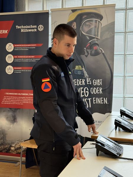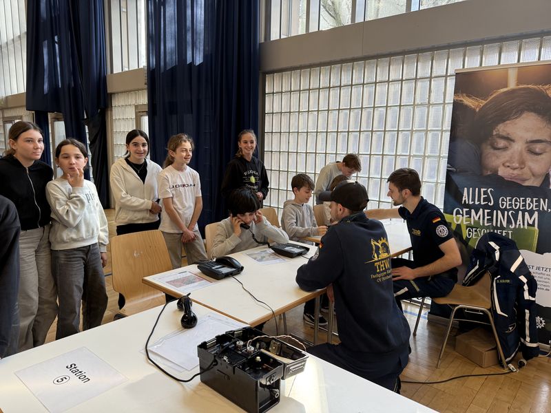 Beim THW erfuhren die Klassen, wie wichtig funktionierende Kommunikation im Krisenfall ist. Neben dem korrekten Absetzen eines Notrufs lernten sie technische Lösungen kennen, die selbst dann greifen, wenn herkömmliche Kommunikationswege, etwa durch beschädigte Infrastruktur, ausfallen.