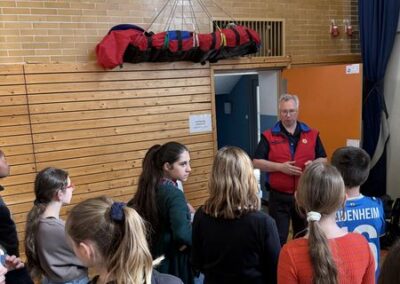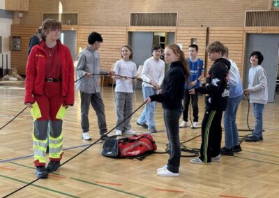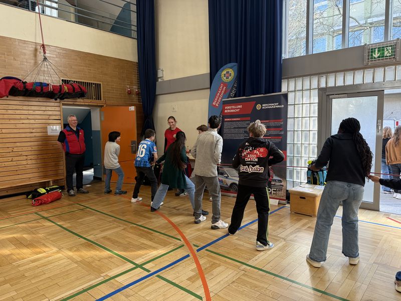 Die Bergwacht schließlich zeigte eindrucksvoll, wie breit ihr Einsatzspektrum ist: von der Rettung verunglückter Radfahrer im Gelände bis hin zu außergewöhnlichen Bergungen. Mit dem Erlernen des Halbmastwurfs erhielten die Schülerinnen und Schüler zudem einen Einblick in grundlegende Sicherungstechniken.