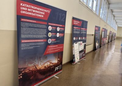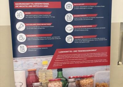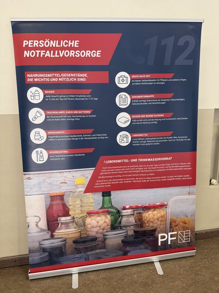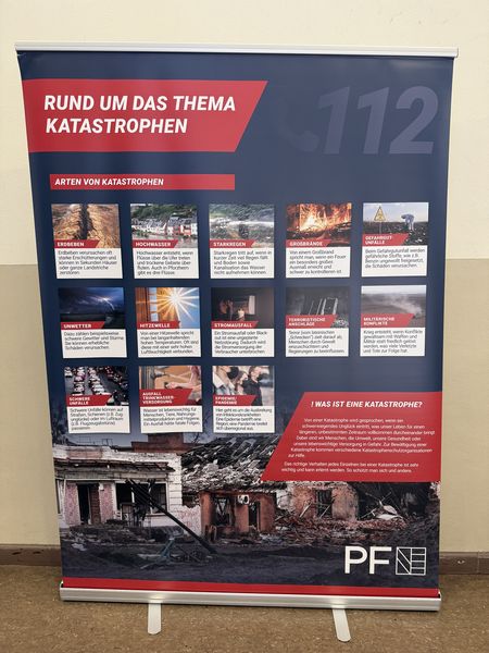 An der Station „Wissenswertes rund um Katastrophen“ stand die Frage im Mittelpunkt, wie man sich in Ausnahmesituationen richtig verhält. Themen wie Warn-Apps, die Zusammenarbeit verschiedener Organisationen sowie das richtige Handeln bei Stromausfällen, Hochwasser oder Unwettern wurden verständlich und lebensnah vermittelt. Auch die Bedeutung persönlicher Notfallvorsorge wurde den Schülerinnen und Schülern eindrücklich vor Augen geführt.