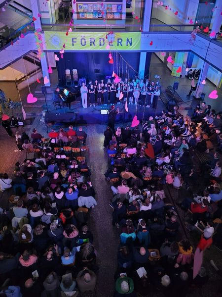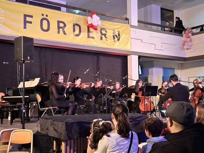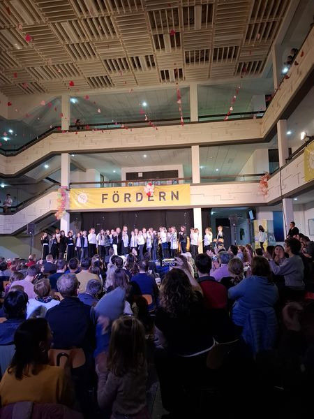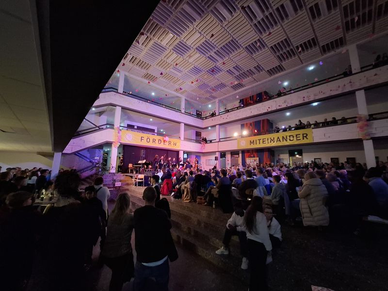 Das Atrium und die Galerien waren sehr gut gefüllt und die Einladung von „Schnack und Snack“ vor dem Konzert wurde in der Pause wieder direkt aufgenommen. Ein Ort des Austausches, ein Ort der Begegnung im Herzen unseres Reuchlin-Gymnasiums.
