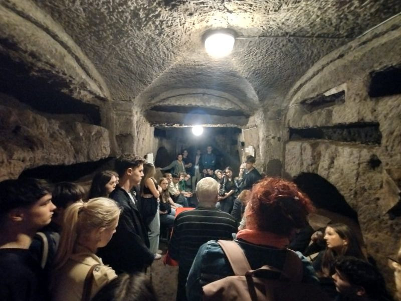 Nachdem wir alle drei Stunden Freizeit genießen konnten, stand auch schon die nächste Aktivität an: ein Besuch der Katakombe Santa Domitilla.