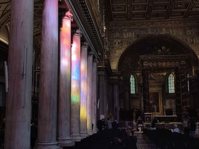 Mit jedem Schritt, den wir tiefer in die Basilika nahmen, wurde einem bewusster, in welch einem menschengemachten Meisterwerk man sich befand. Man begann zu überlegen, mit welch einem Geschick und einer Detailverliebtheit der Künstler seine Skulpturen fertigte, ein weiterer Künstler Stein für Stein sein Mosaik zu Ende brachte und der Architekt Säule um Säule, Altar um Altar seinen Platz vergab. Das Highlight vieler war die heilige Pforte, deren Tore alle 25 Jahre, im heiligen Jahr, für Menschen aller Welt geöffnet werden. Hinter der Pforte lies sich eine besondere Skulptur erblicken Aus weißem Carrara- Marmor, von Michelangelo entworfen, viel der Blick auf Maria, die seinen Sohn im Arm hielt. Haut und Stoff organisch geformt, Maria und Jesus schienen nahezu lebendig zu wirken