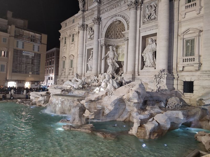 Danach sind wir gleich weiter zu einer Stadtführung bei Nacht gegangen, bei der uns innerhalb von zwei Stunden die wichtigsten Monumente in Rom gezeigt wurden. Zu Beginn der Führung haben wir uns die Spanische Treppe bei Nacht angeschaut. Weiter ging es für uns zum Trevi-Brunnen, der uns mit seiner Größe extrem beeindruckt hat. Auch das Gemälde von Michelangelo hat uns in der Kirche sehr beeindruckt.
