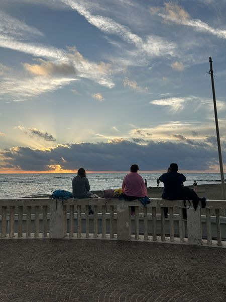 Zum Abschluss des Tages fuhren wir weiter zur Küste von Ostia, um dort den Sonnenuntergang am Meer zu erleben. Trotz der Müdigkeit nach einem langen Tag war die Stimmung ausgelassen. In kleinen Gruppen suchten wir uns Restaurants aus, um gemeinsam zu essen – meist klassische italienische Gerichte wie Pizza und Pasta. Auch kleine Überraschungen wie zusätzliche Servicegebühren konnten die gute Laune nicht trüben.
