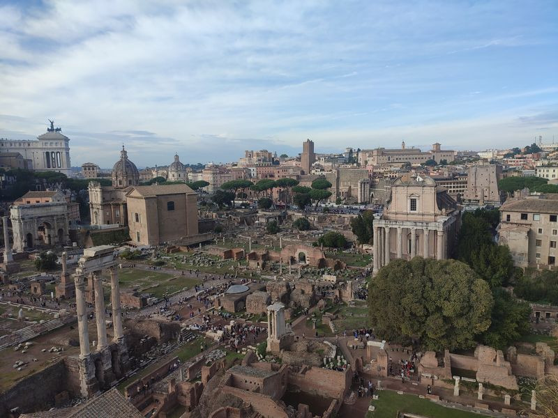 Danach sind wir weiter zum Forum Romanum gegangen. Die gleiche Führerin hat uns gezeigt, wo früher Tempel und Märkte waren. Auch wenn heute nur noch Ruinen da sind, konnte man sich trotzdem gut vorstellen, wie es damals ausgesehen hat. Und da kam zum Glück auch noch die Sonne raus, das hat alles nochmal viel schöner gemacht.