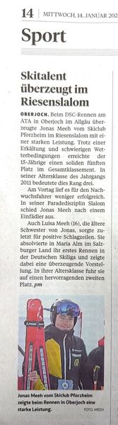 Mit 3 Jahren stand Jonas Meeh zum ersten Mal auf Skiern, mit 14 feiert er herausragende Erfolge auf der Piste als bester deutscher alpiner Rennläufer seiner Altersklasse.